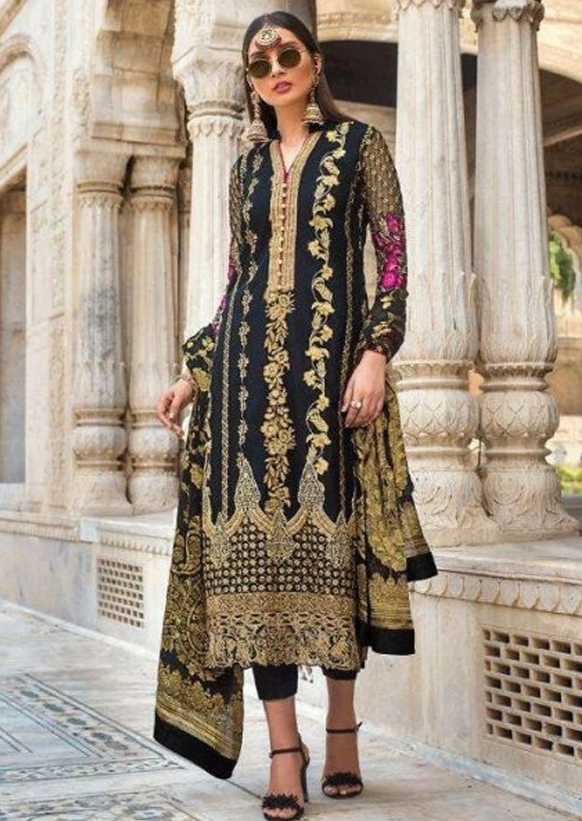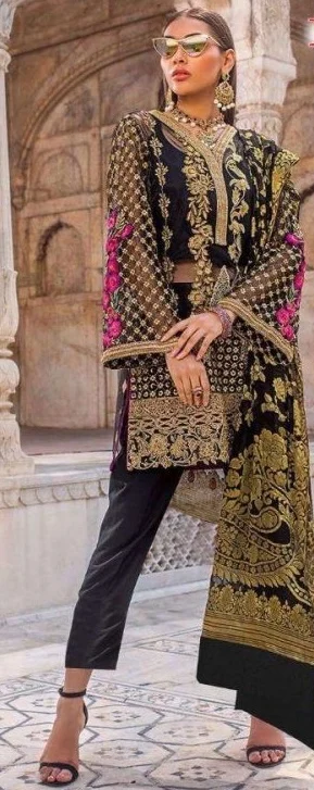 Grey & Pink Georgette zari and thread embroidery suit with pearl border