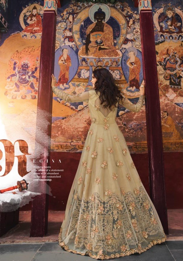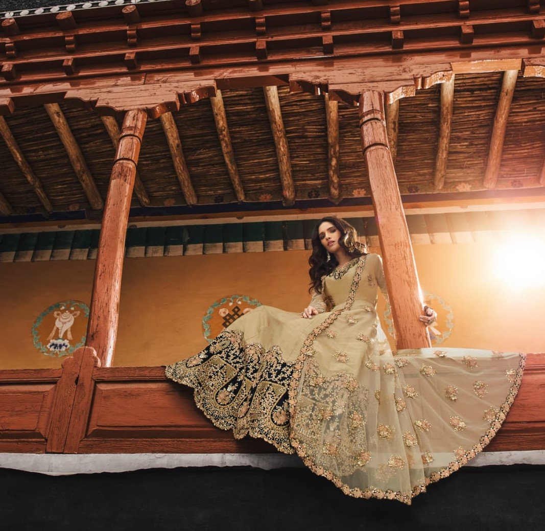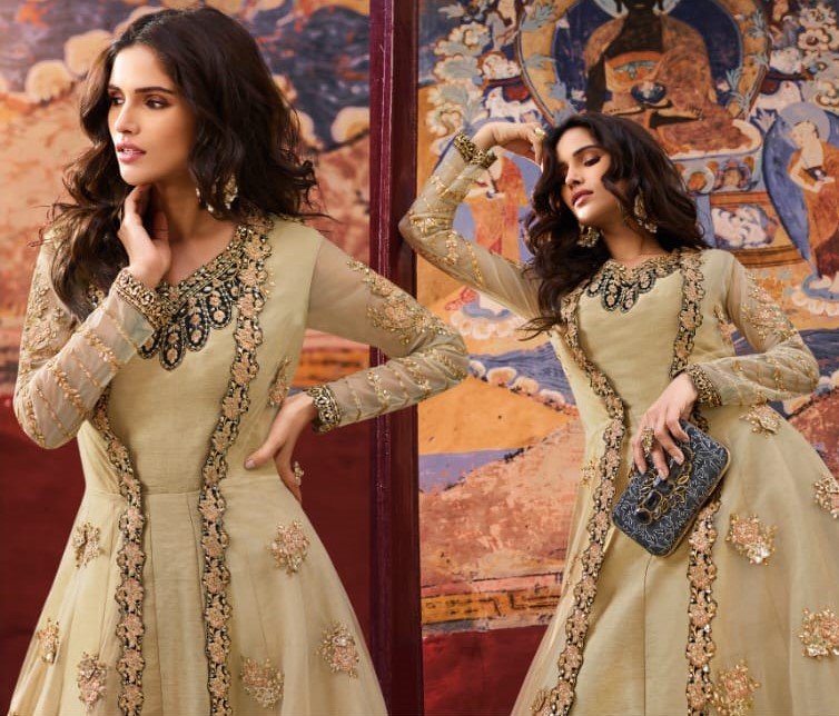 Beige heavy embroidered Anarkali suit