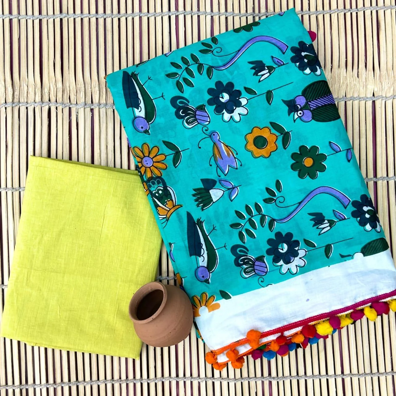 Green and Yellow Mul Cotton saree