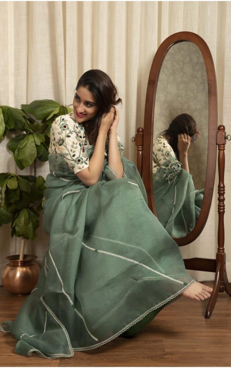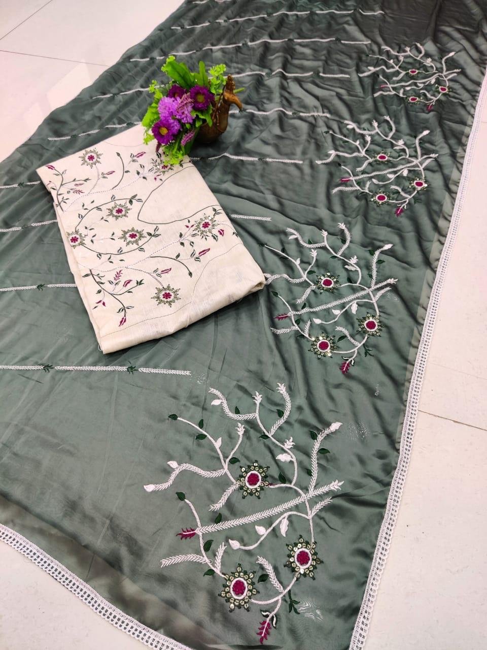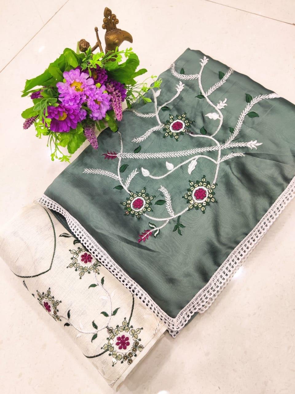 Saree – Pure Mercerised Tissue Silk in Exclusive weaving Border Design with Contrast Pallu and Tassels