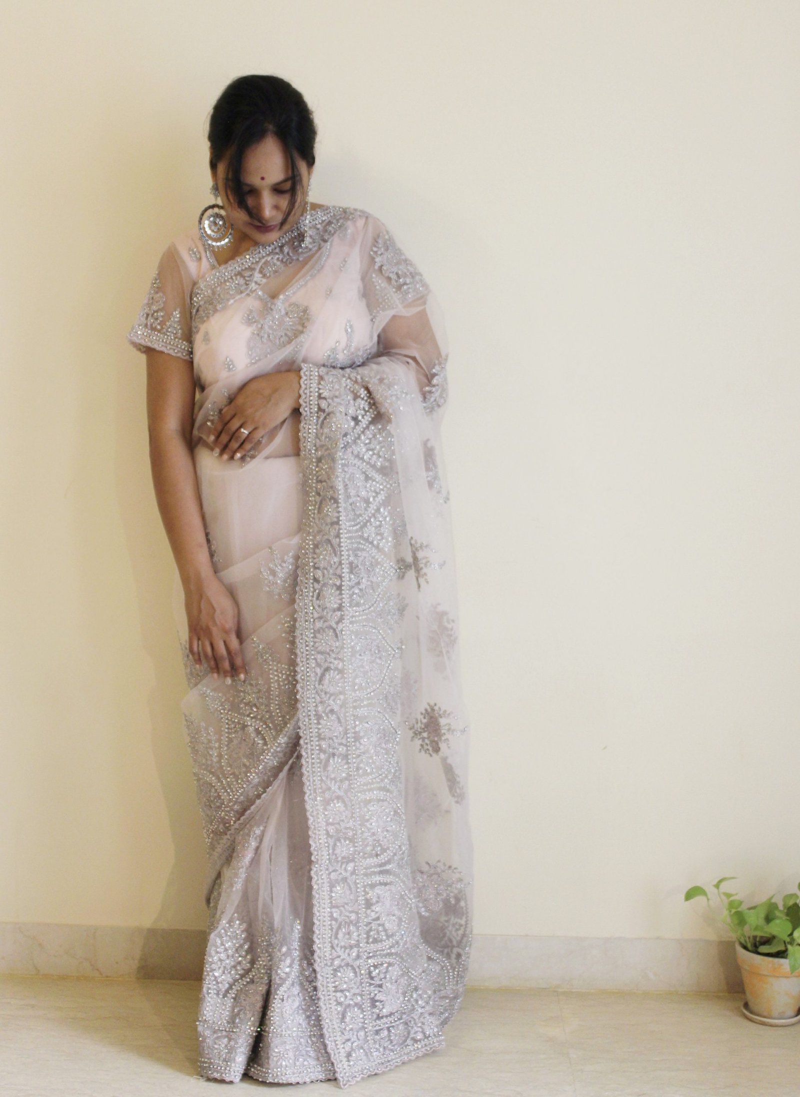 Grey Net Saree with shimmer & embroidery