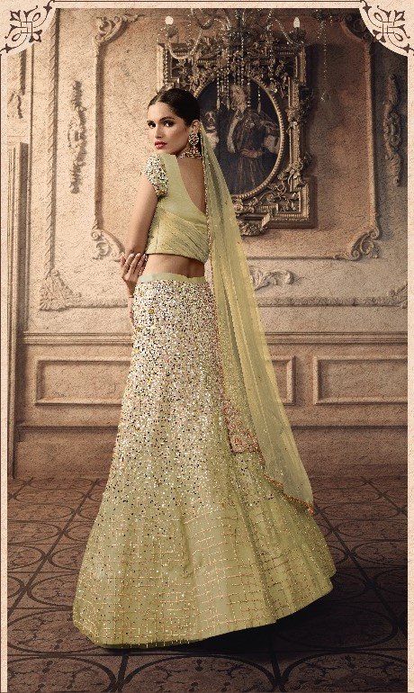 Olive Green Sequined Net Lehenga