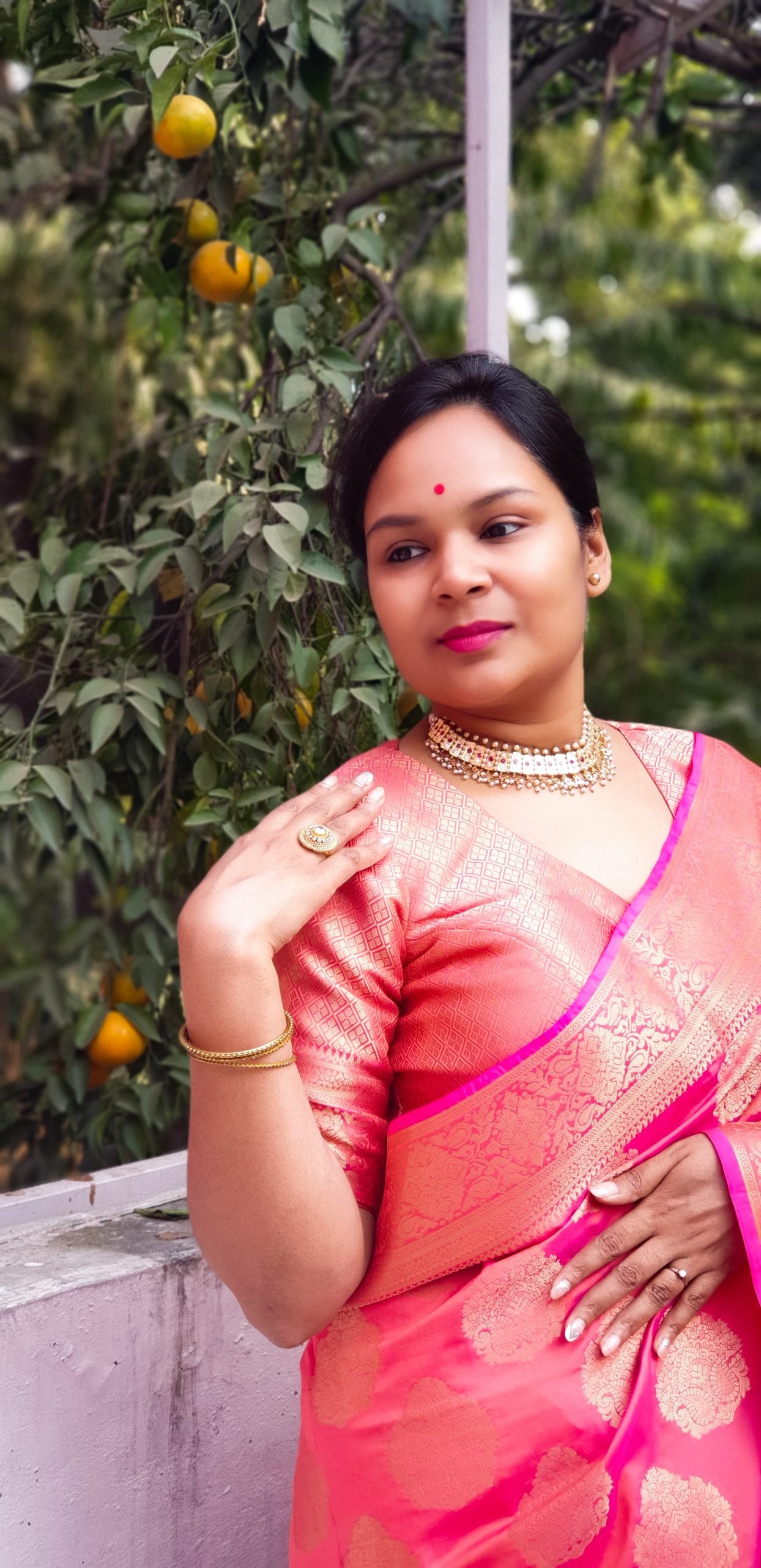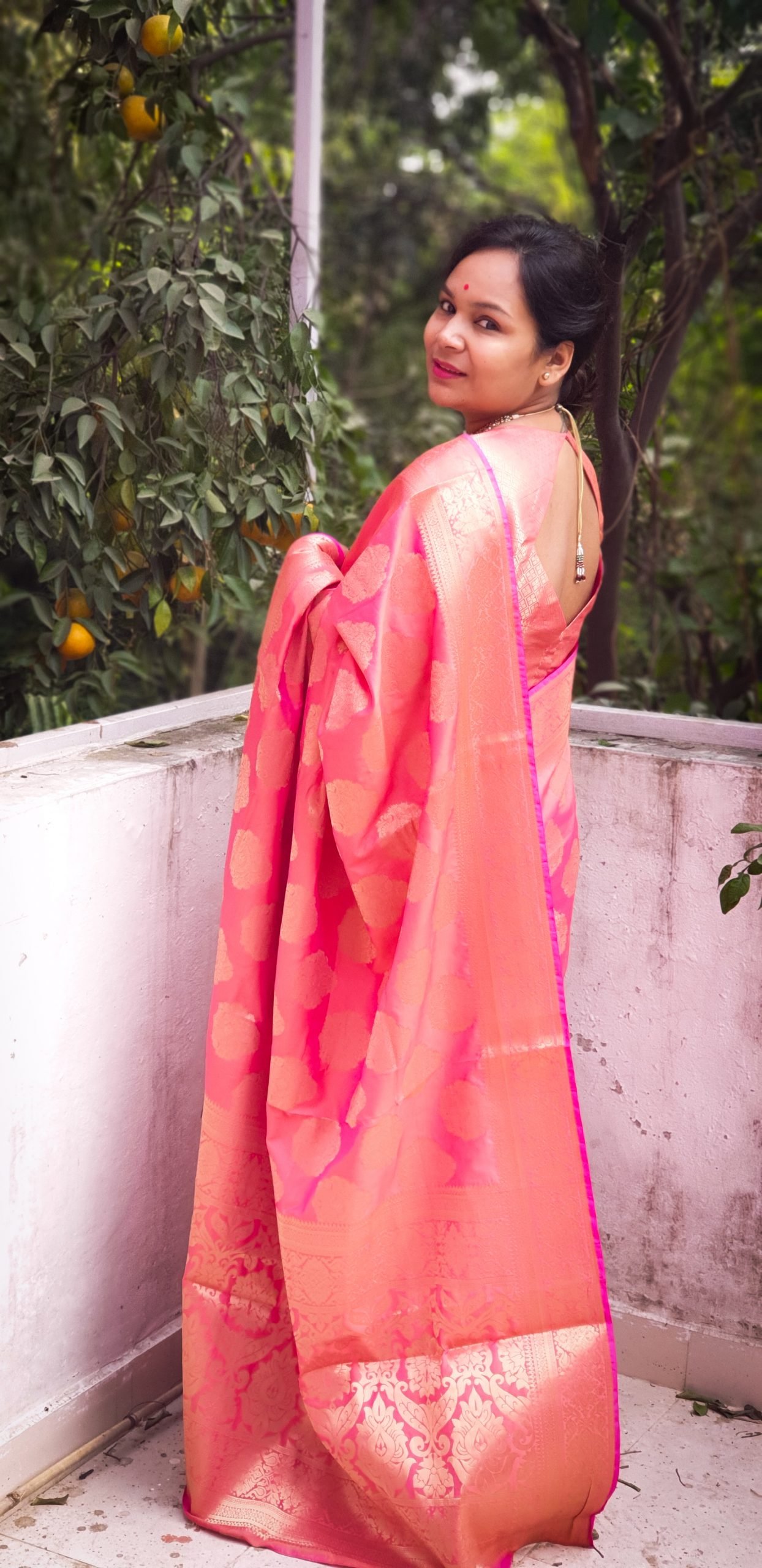 Fabric – Banarasi Soft Silk saree with rich pallu and gold zari work,