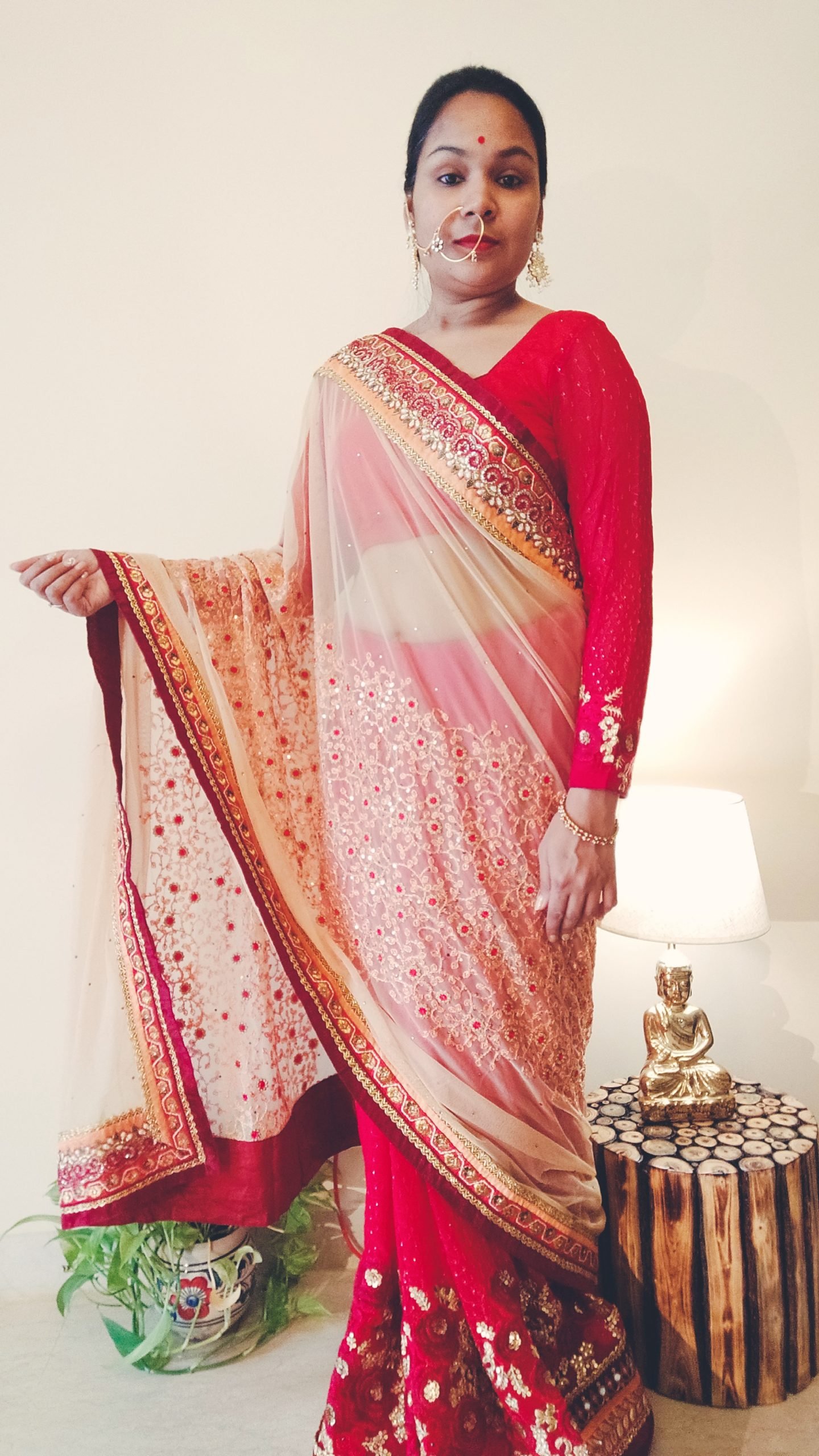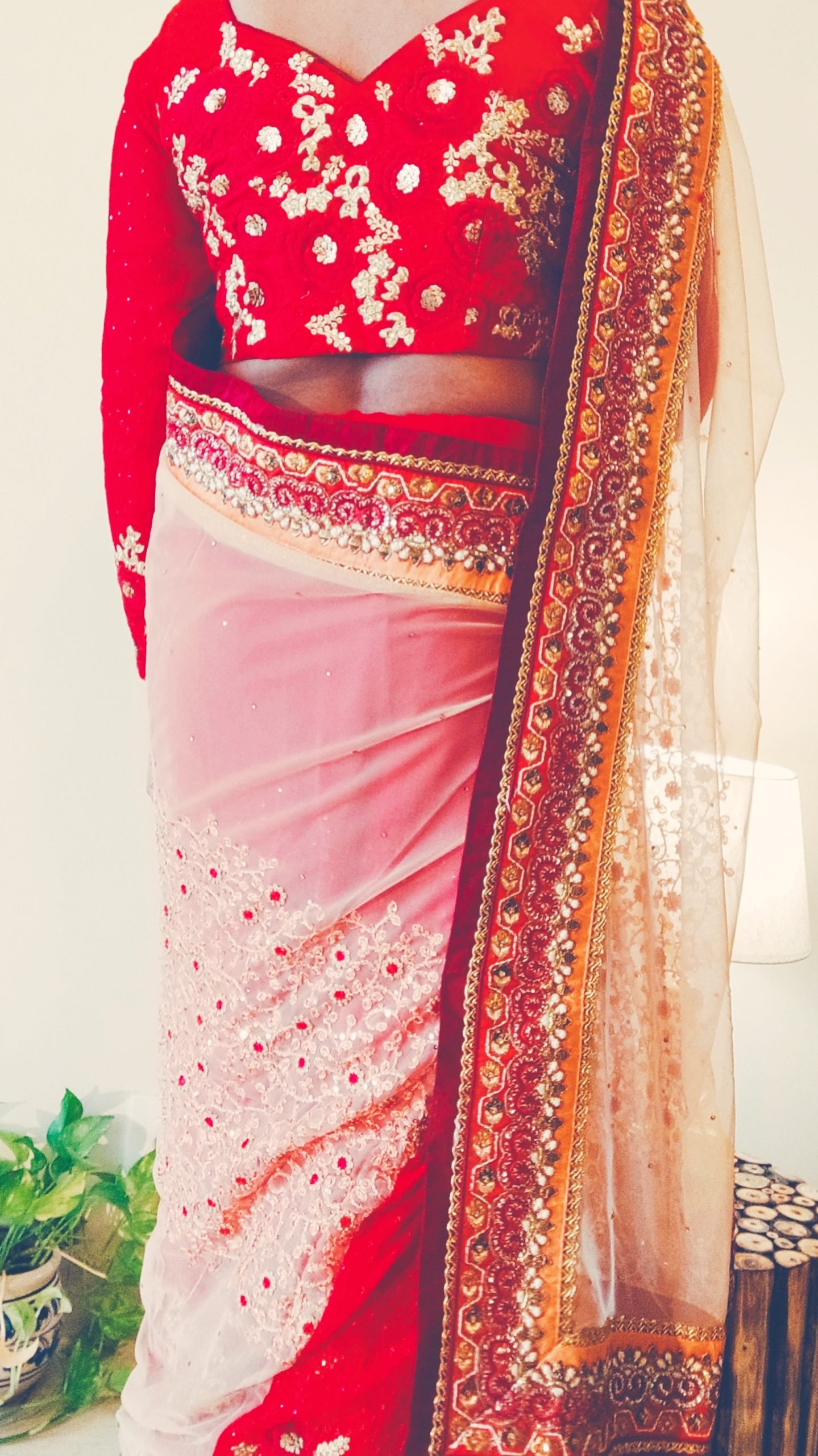 Red & Beige Net Saree