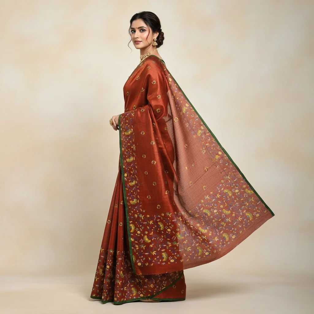 Saree – Jute Silk (HD print and mirror work and contrast piping border)