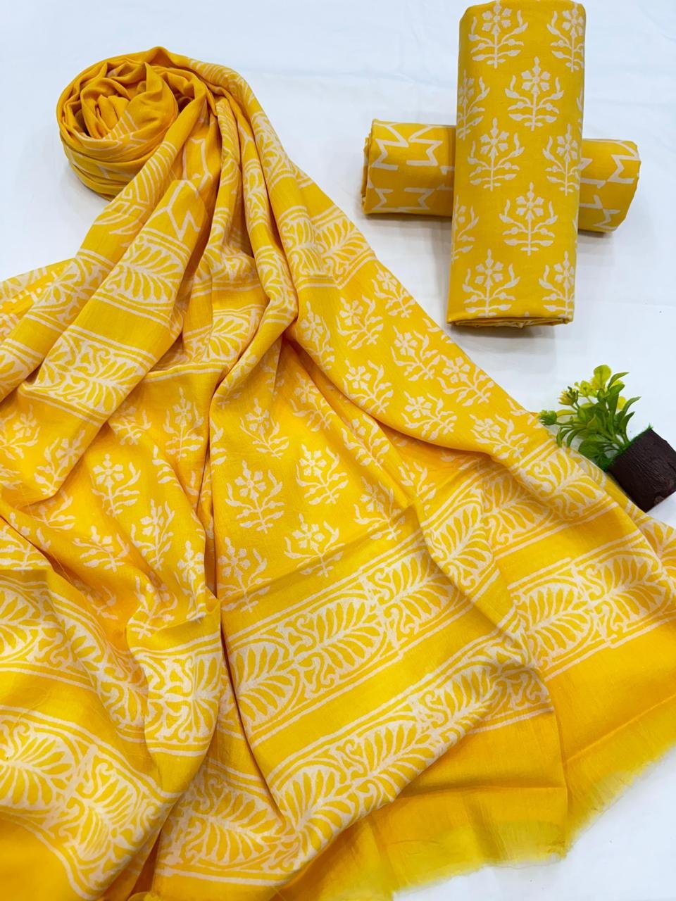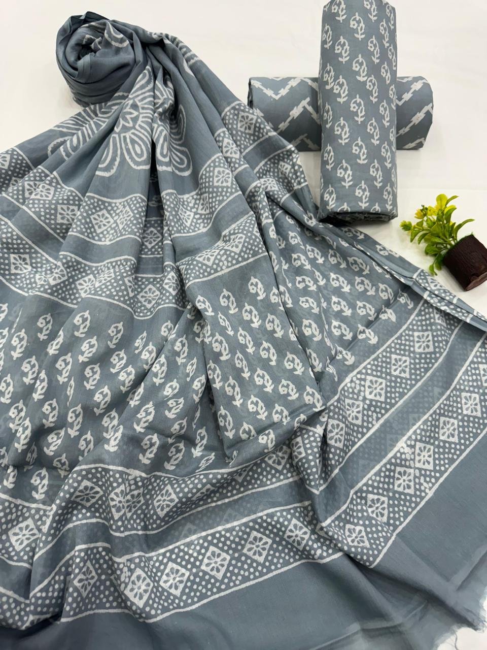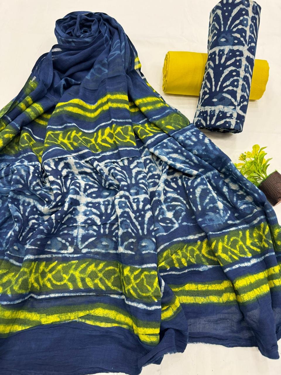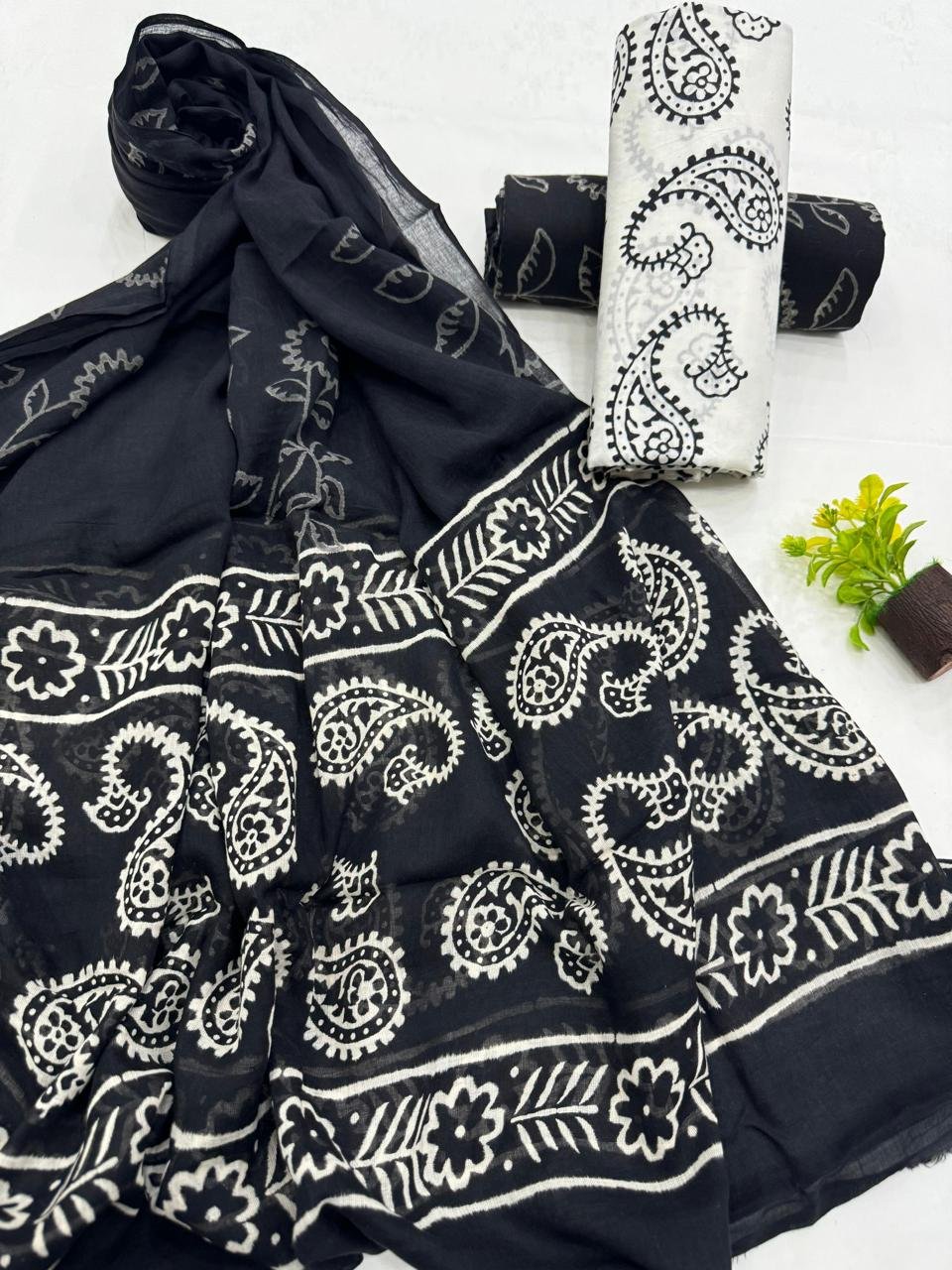 Beautiful Hand block Printed Cotton suits with mulmul cotton Dupatta